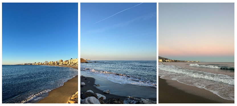 Aamu- ja iltakävelymaisemia Torreblancan rannalla. Kuva: Taru Tallgren.