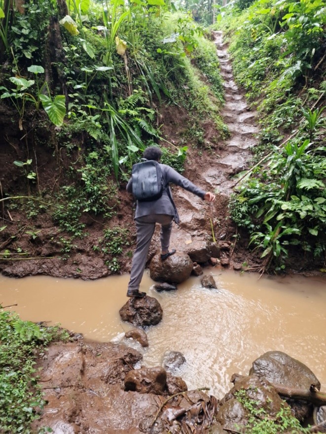 Sairaanhoitaja matkalla palliatiivisen potilaan kotiin Tansaniassa Moshin alueella. Kuvaaja: Anna Massawe, Kilimanjaro Christian and Medical Centre