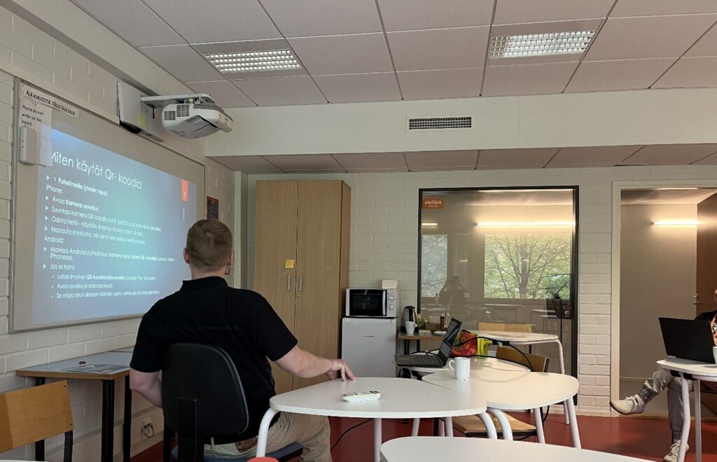 Kuva: Digikaveri opastaa QR-koodin käytössä. (Annamaija Korhonen)